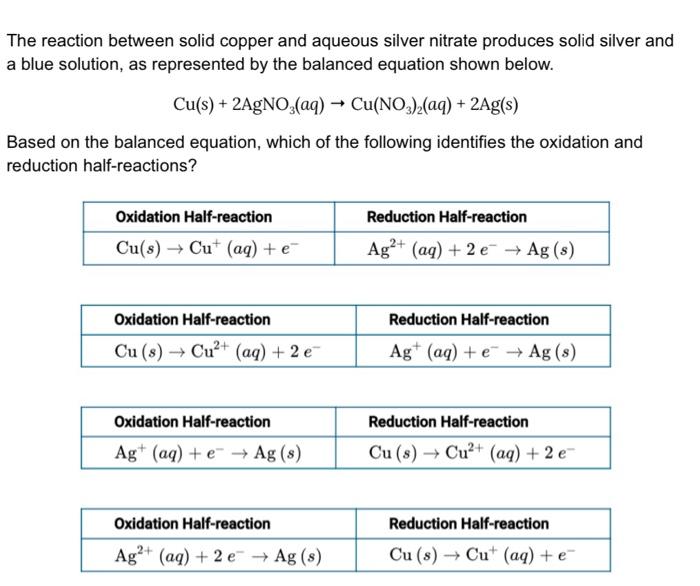 This can be called a redox reaction because silver nitrate is reduced and copper is oxidized. Feb 03 2021 aqueous ammonia and silver nitrate. 2 AgNO3 aq Cu CuNO32 aq 2 Ag.